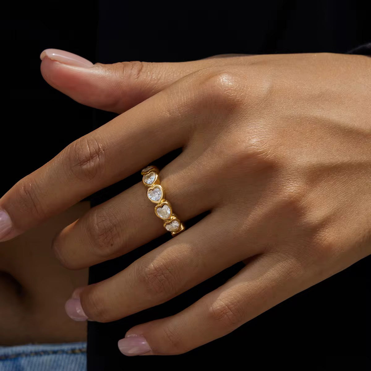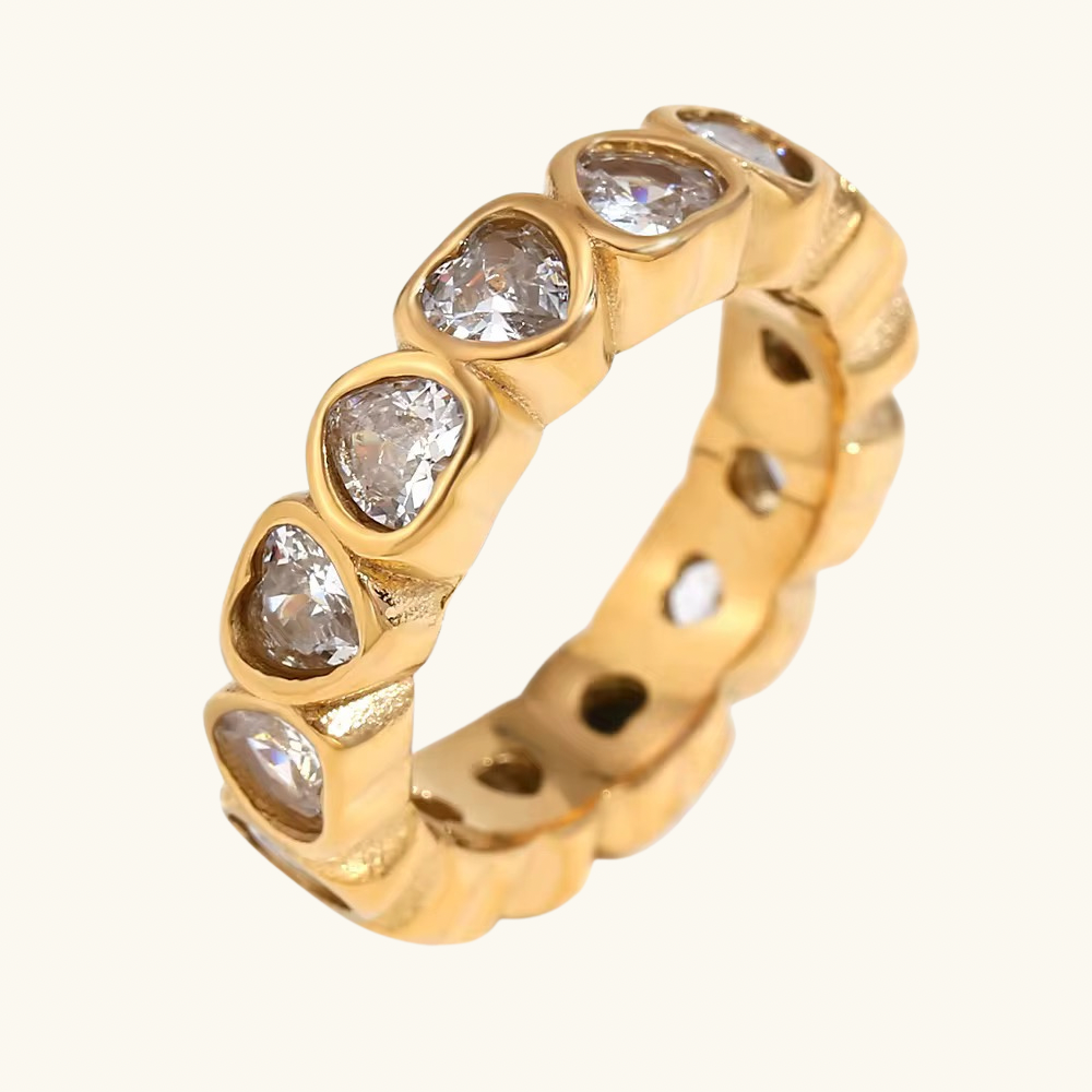 The Duchess Band embodies timeless elegance with a modern twist. Designed with sculpted gold curves and dazzling CZ stones all around, she radiates luxury from every angle. Whether worn solo or stacked with your other Nova favorites, this ring instantly elevates any look — because every girl deserves to feel like royalty.